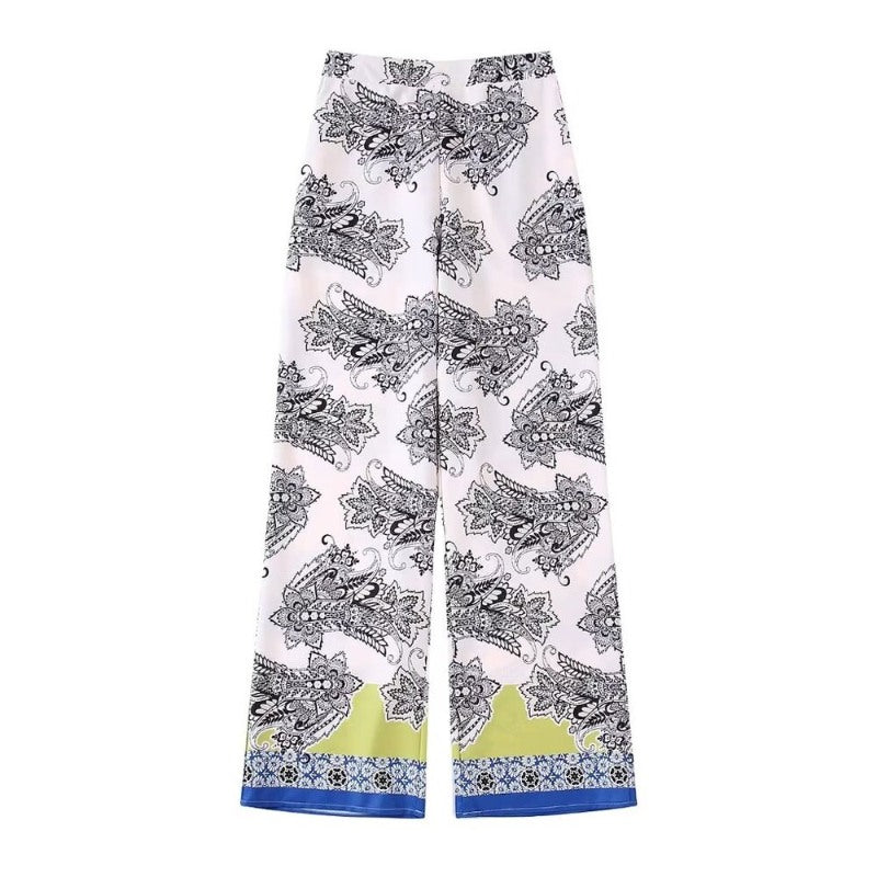 Vintage High Waist Back Elastic Printed Wide Leg Pants
