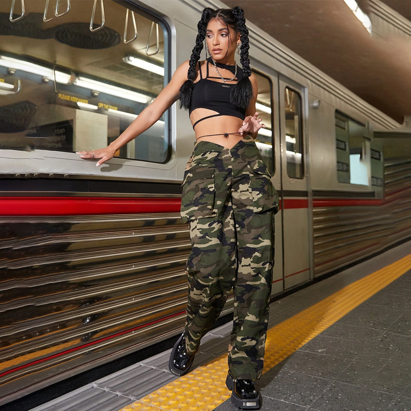 Flap Pocket Drawstring Hem Casual Cargo Pants