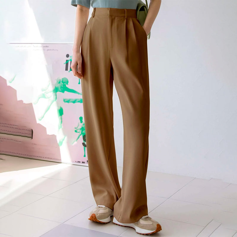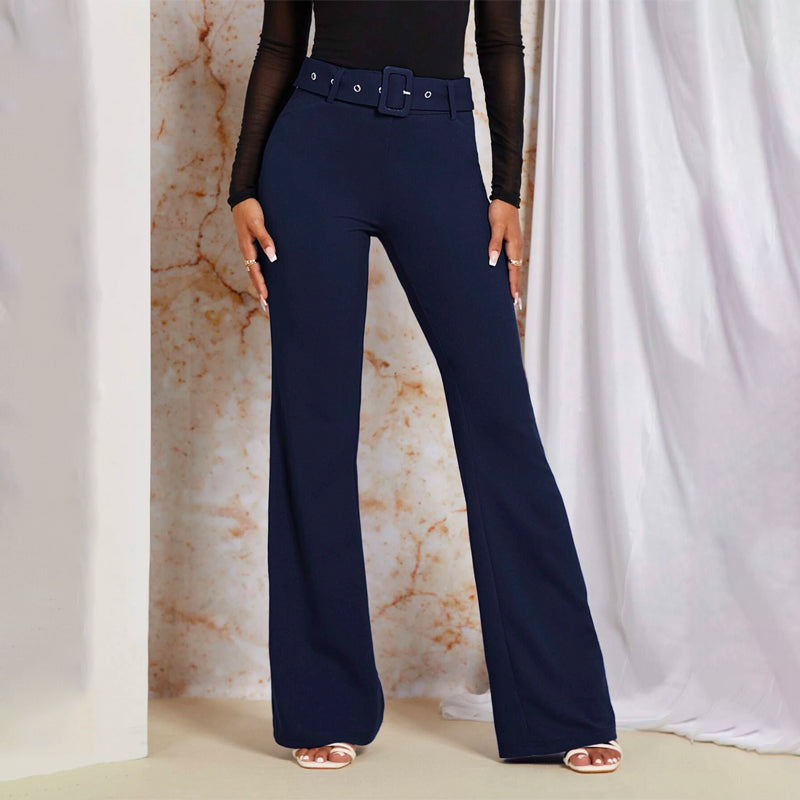 High Waist Slant Pockets Plicated Belted Pants