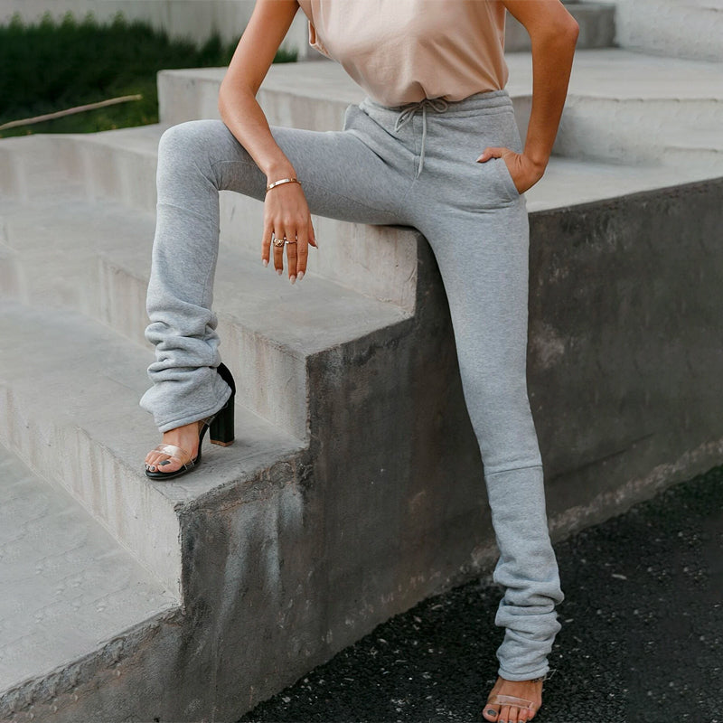 Drawstring Waist Slant Pocket Stacked Pants