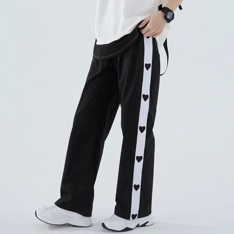 Black Heart Print Contrast Side Seam Pants
