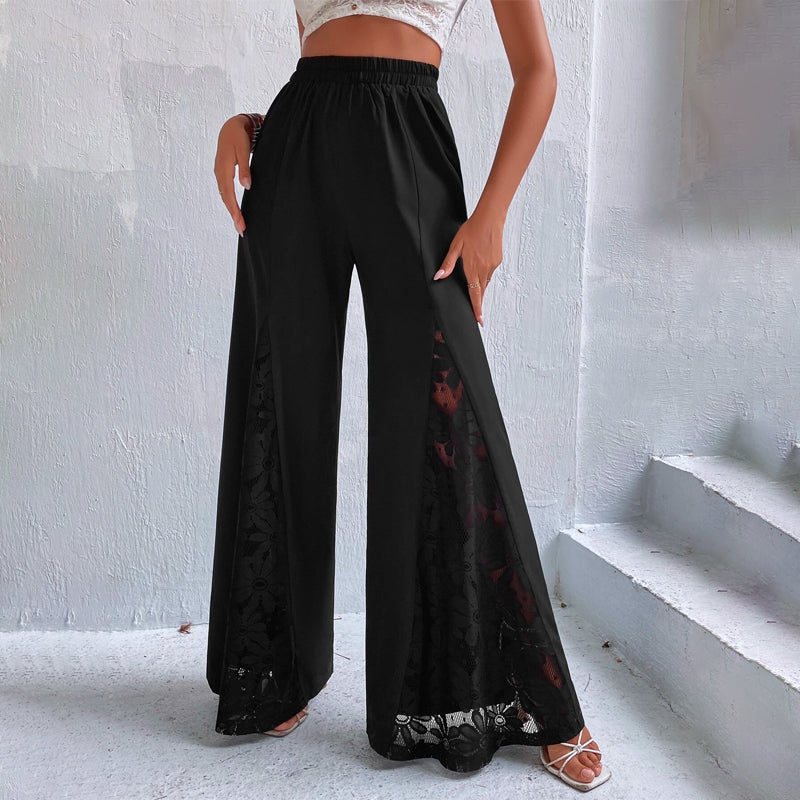 Lace Insert Wide Leg Pants