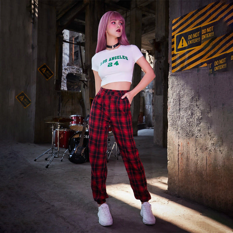 Grunge Punk Kpop Tartan Print Pants