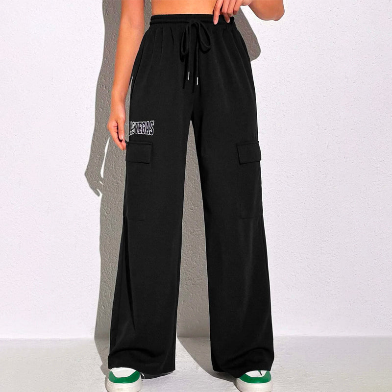 Letter Embroidery Drawstring Waist Flap Pocket Cargo Pants