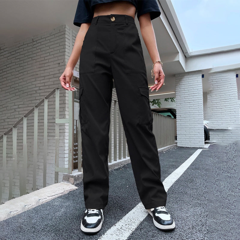 High Waist Flap Pocket Side Cargo Pants