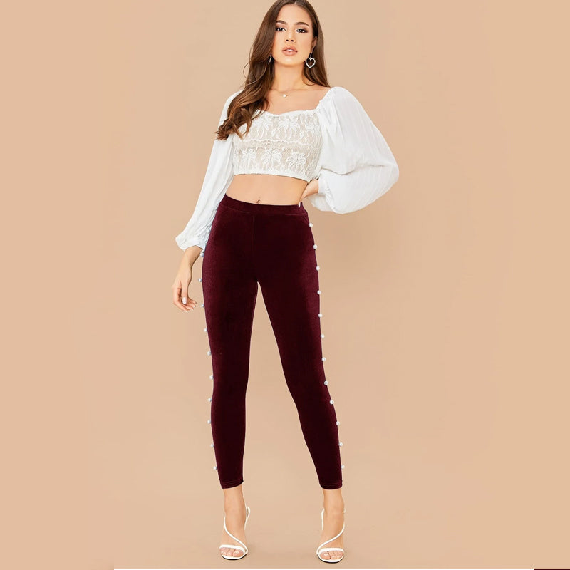 Pearl Beaded Velvet Skinny Pants