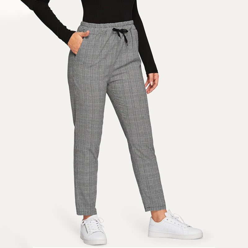Plaid Drawstring Ankle Cut Pants