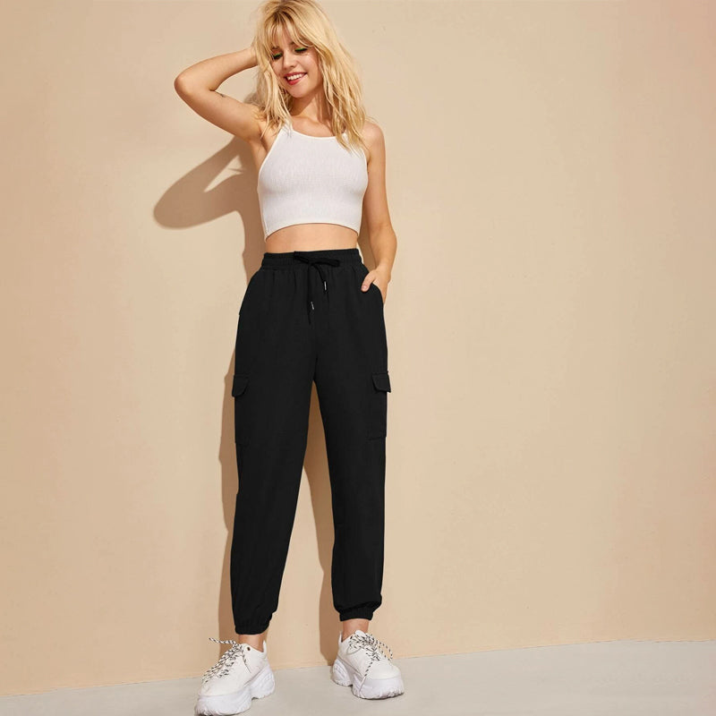 High Rise Drawstring Cargo Joggers