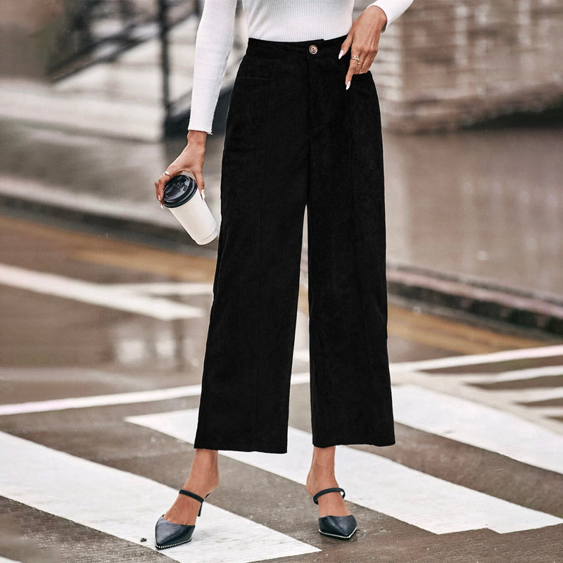 Easy Wear High Waist Slant Pocket Cord Pants