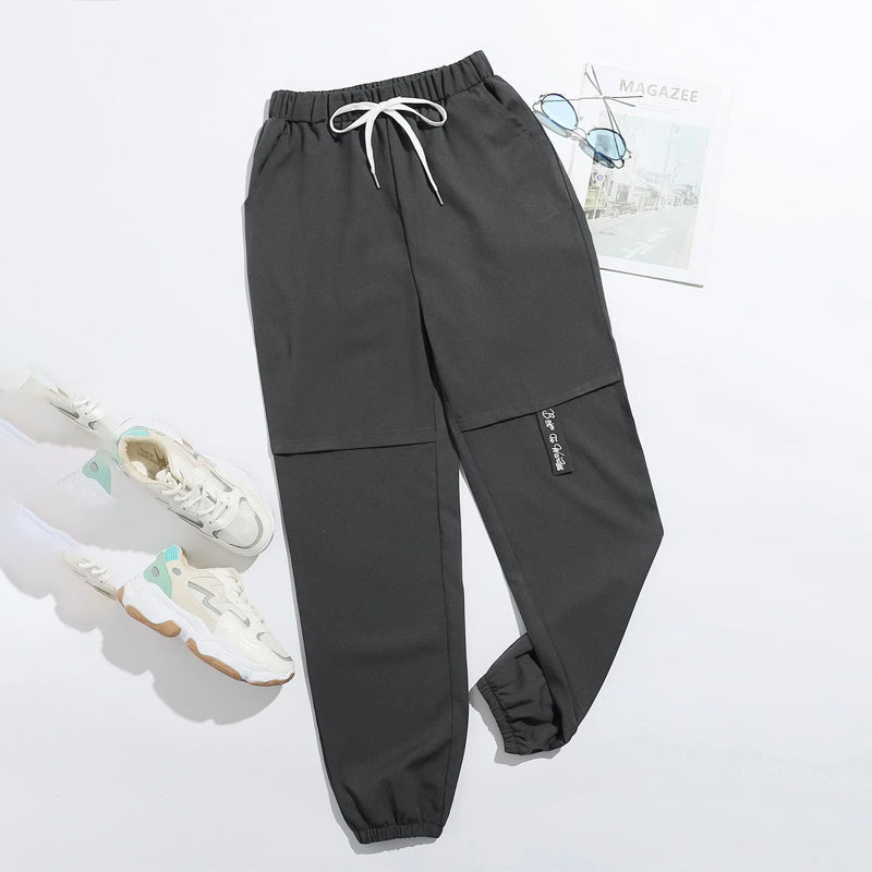 Letter Embroidery Drawstring Waist Carrot Pants