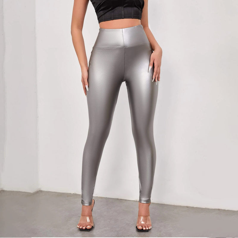 Solid Skinny PU Leather Pants
