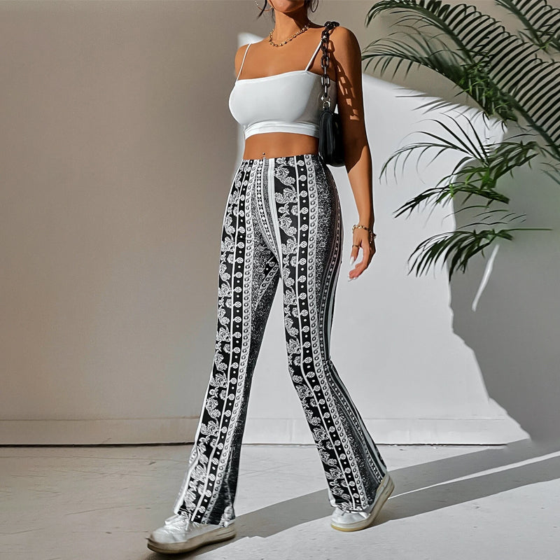 Striped And Floral Print Flare Leg Pant