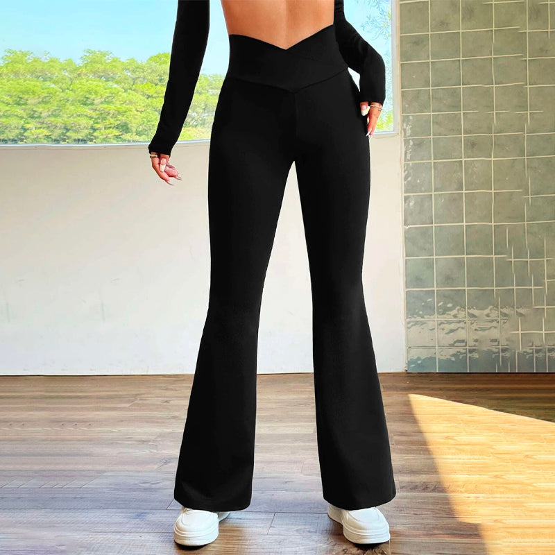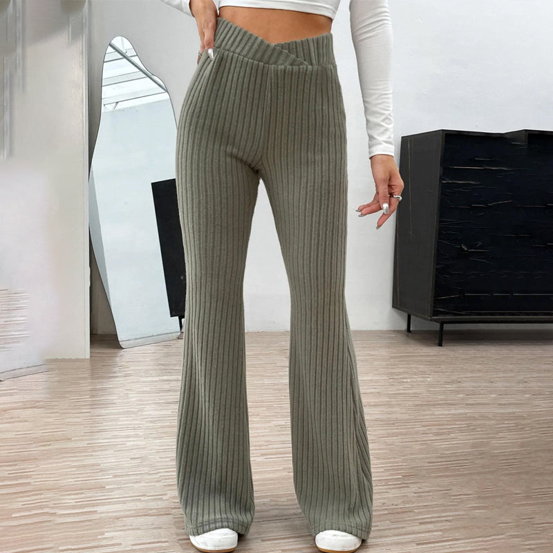 Overlap Waist Flare Leg Pants