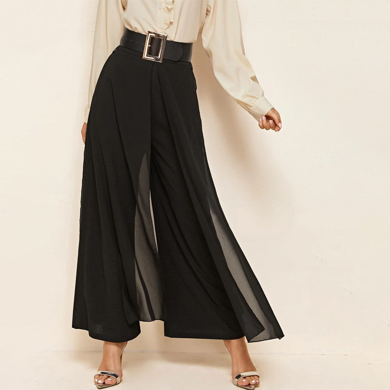 Skirt Overlay Buckle Belted Wide Leg Pants