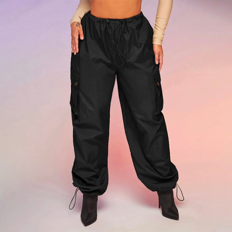 Flap Pocket Drawstring Waist Parachute Cargo Pants
