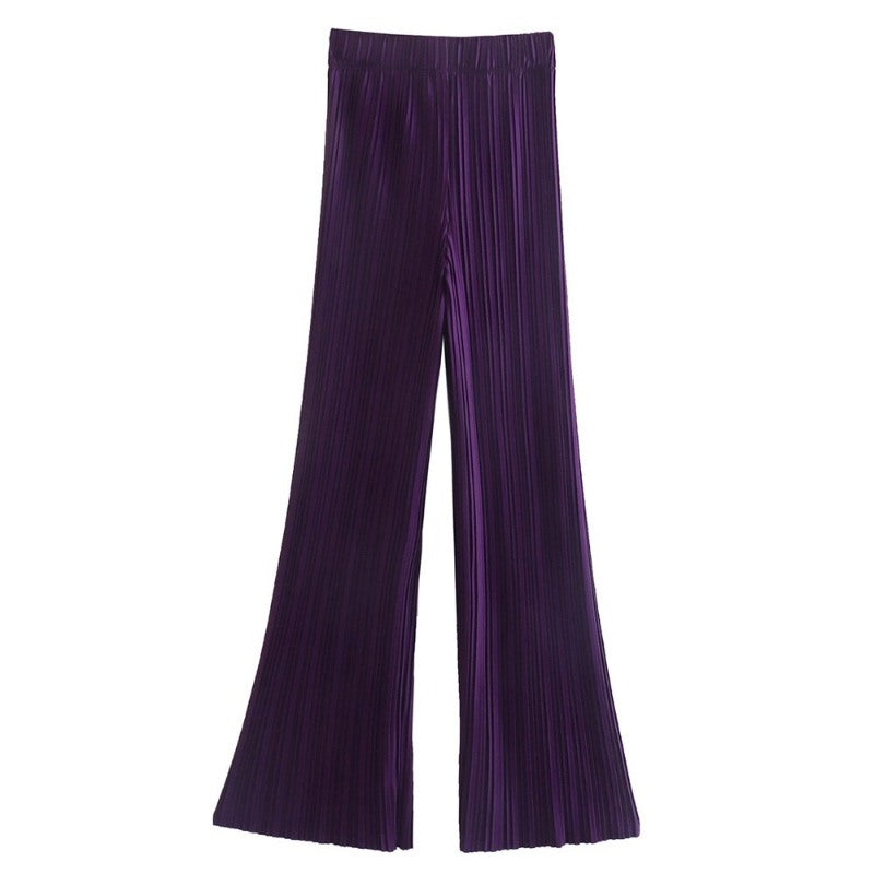 Purple Striped Pleated Flare Pants