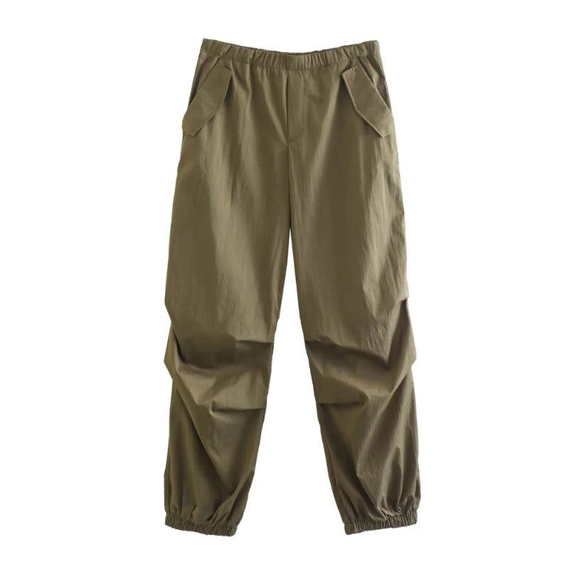 Fashion Side Pockets Pleats Knee Jogging Pants