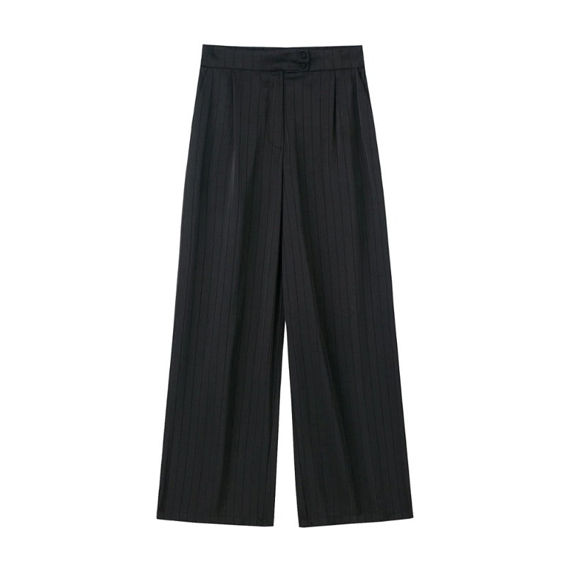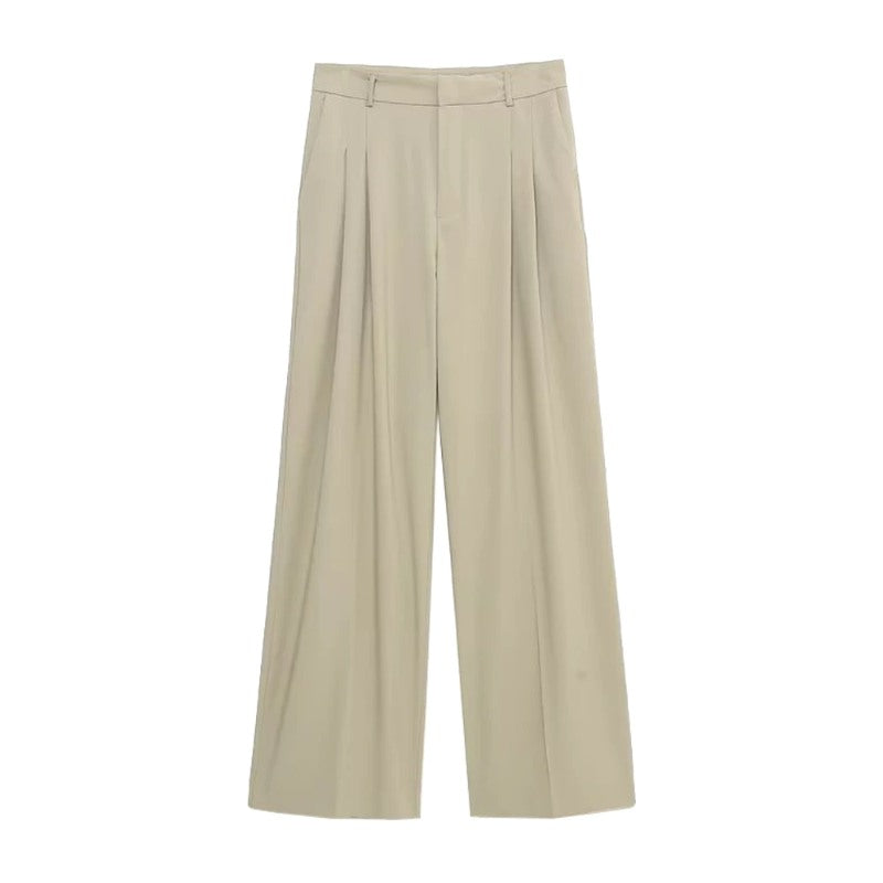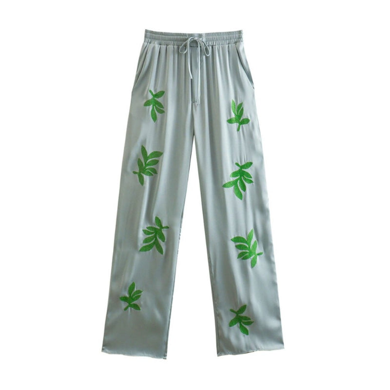 Fashion Green Contrast Embroidery Linen Wide Leg Pants