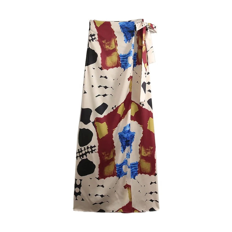 Tied Bow Printed Wrap Wide Leg Pants