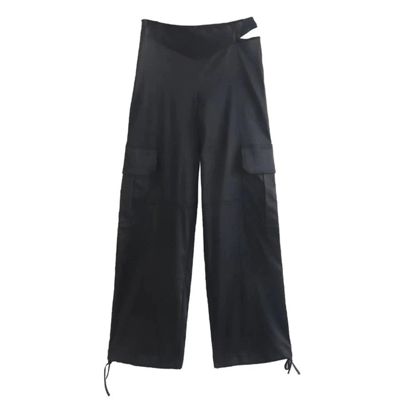 Stylish Black Patch Pockets Hollow Out Cozy Cargo Pants