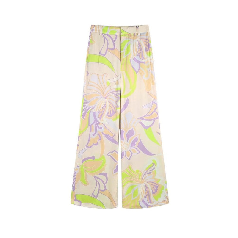 Flowing Printed High Waist Zipper Fly Pants