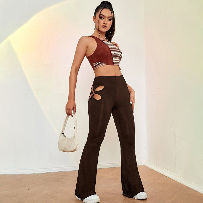 Easy Wear O Ring Cut Out Flare Leg Pants