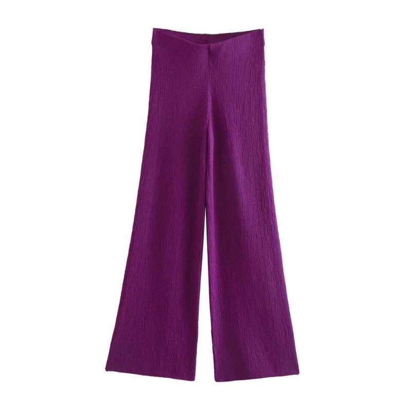 Purple High Waist Textured Straight Knit Pant
