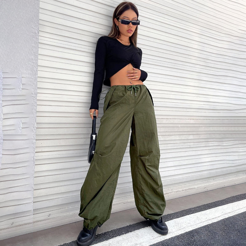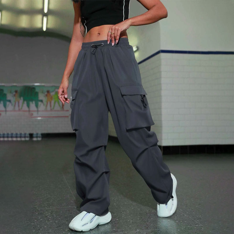 Hip Hop Wide Leg Flap Pocket Parachute Cargo Pants