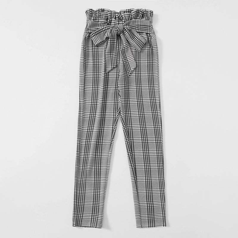 Petite Plaid Print High Waist Pants