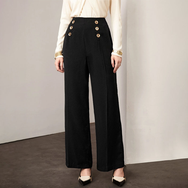 Button Detail Wide Leg Pants
