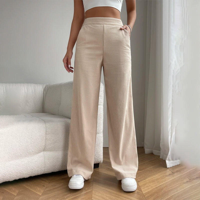 High Waist Casual Rib Knit Pants