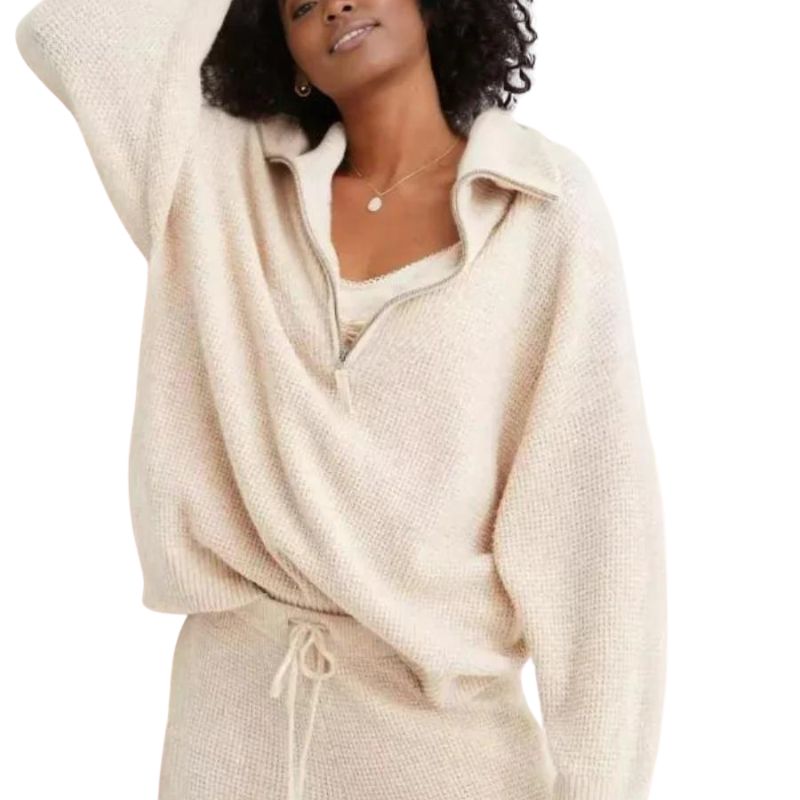 Cozy Half Zip Waffle Weave Sweater Set