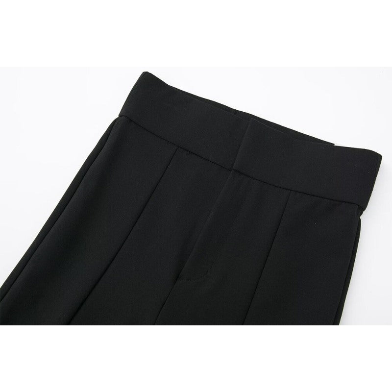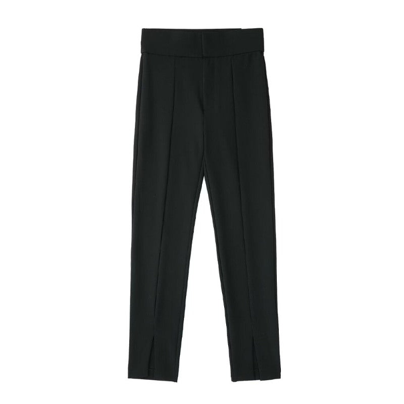 Black Front Slit Hem Skinny Leggings Pants For Women