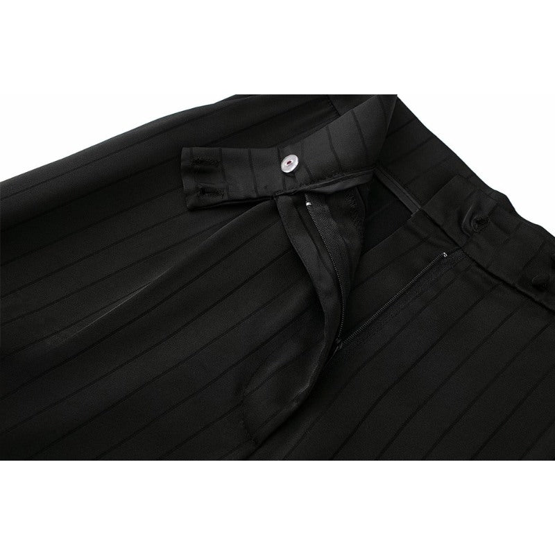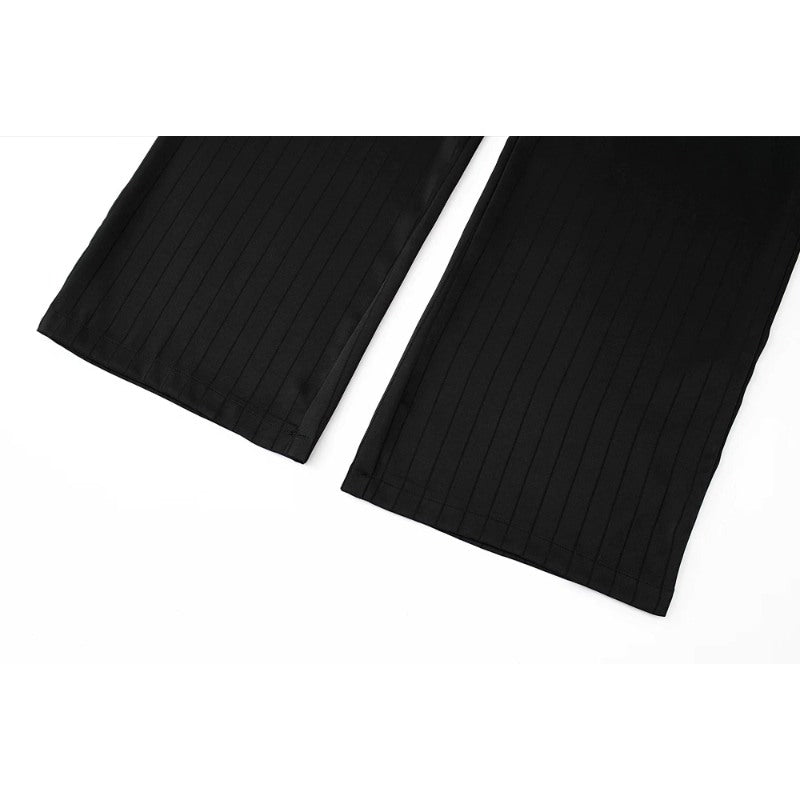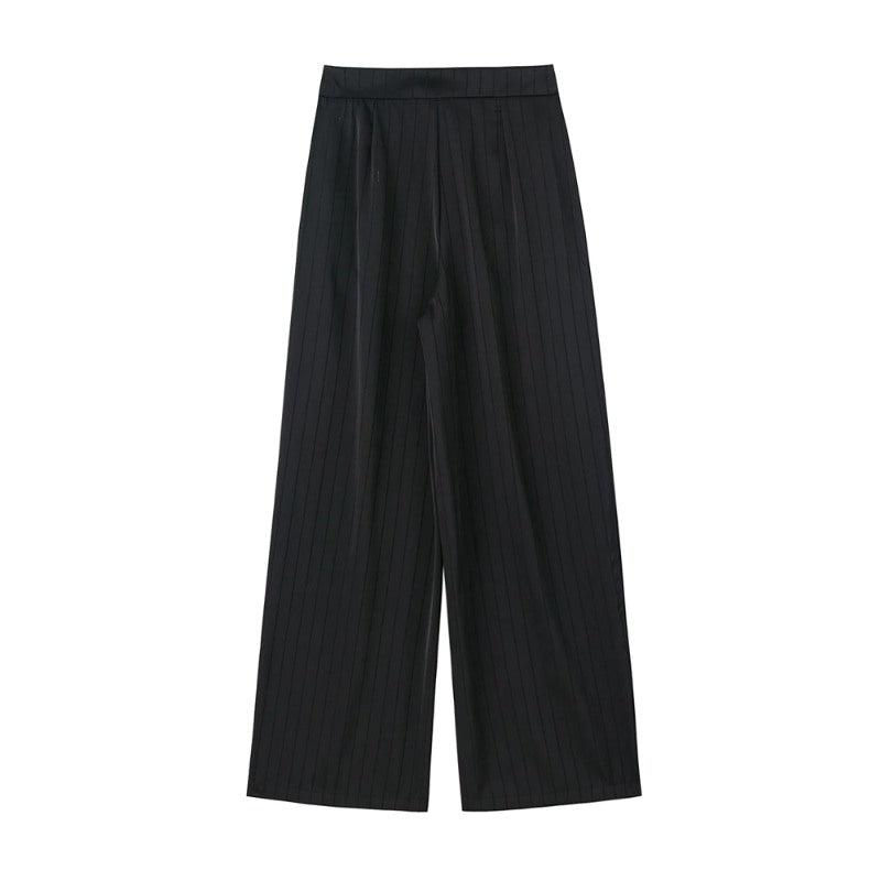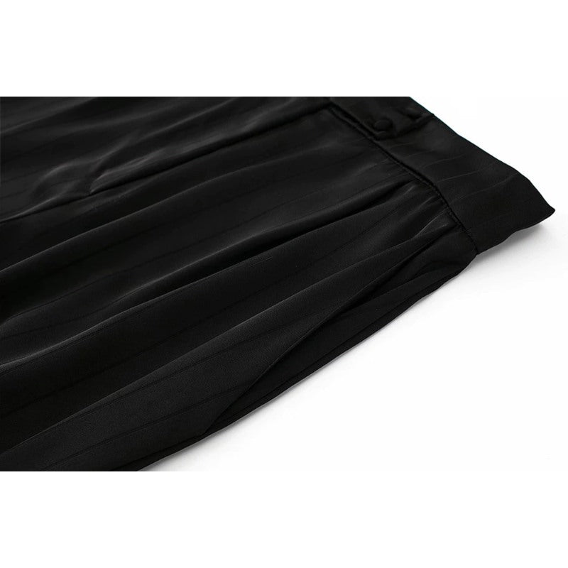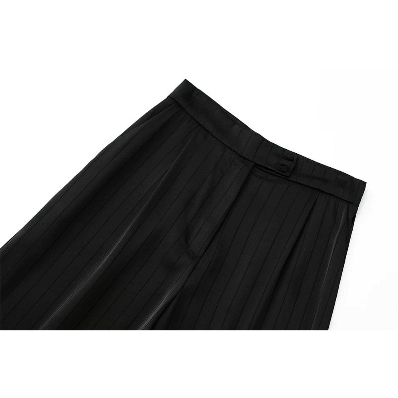 Black Striped Satin Wide Leg Pants