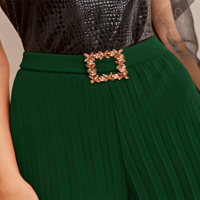 Relaxed and comfortable, Buckle Belted Wide Leg Pleated Pants are perfect for any casual occasion. The tailored design makes these pants easy to wear on their own or combine with a jacket or blazer. These pants are great as party wear or for a special evening as it features a pleated style with a rhinestone-centered waist.
