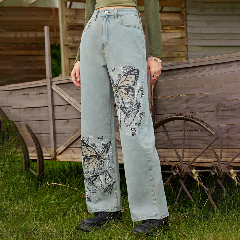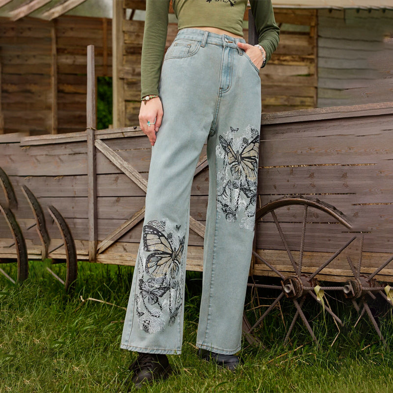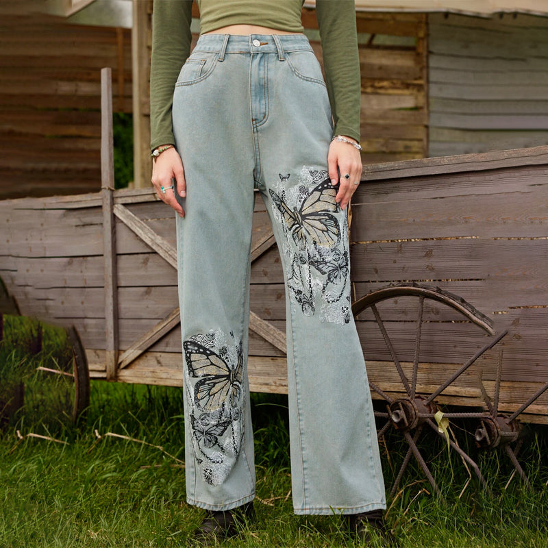 Butterfly Graphic Straight Leg Jeans