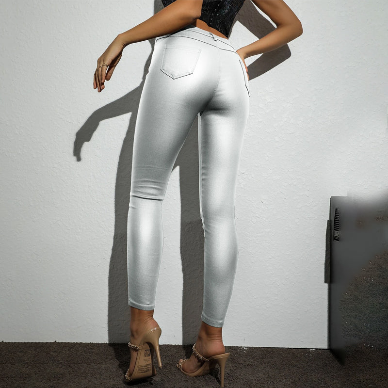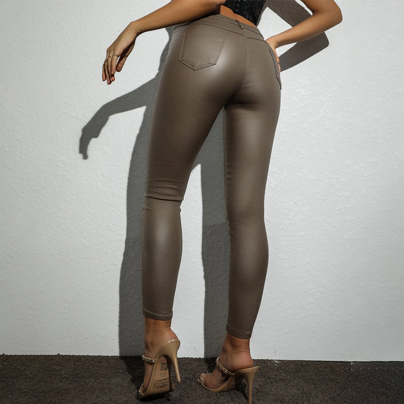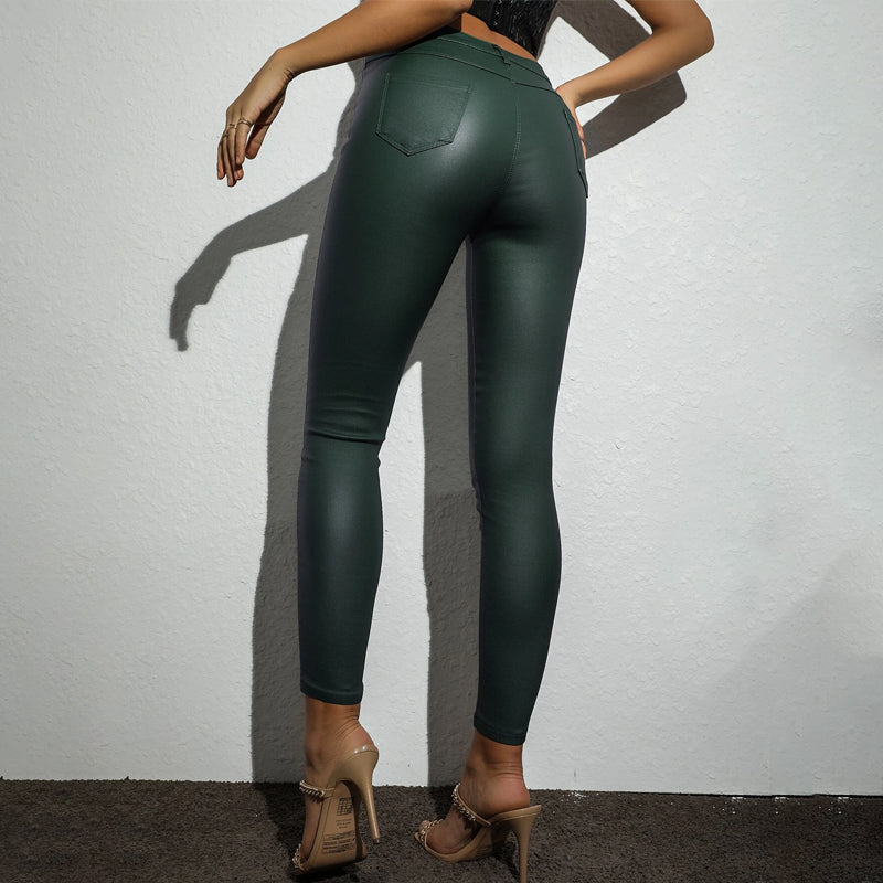 Button Fly Thermal Lined PU Leather Skinny Cropped Pants is crafted of PU leather in fine quality, with a high stretch finish that gives it a smooth, comfortable feel. This button-front design evokes the feeling of boardroom fantasy and elegance. These women’s party pants will become your new favorite pair of party wear!