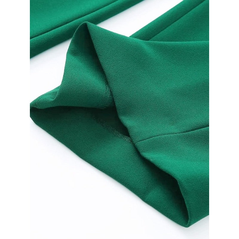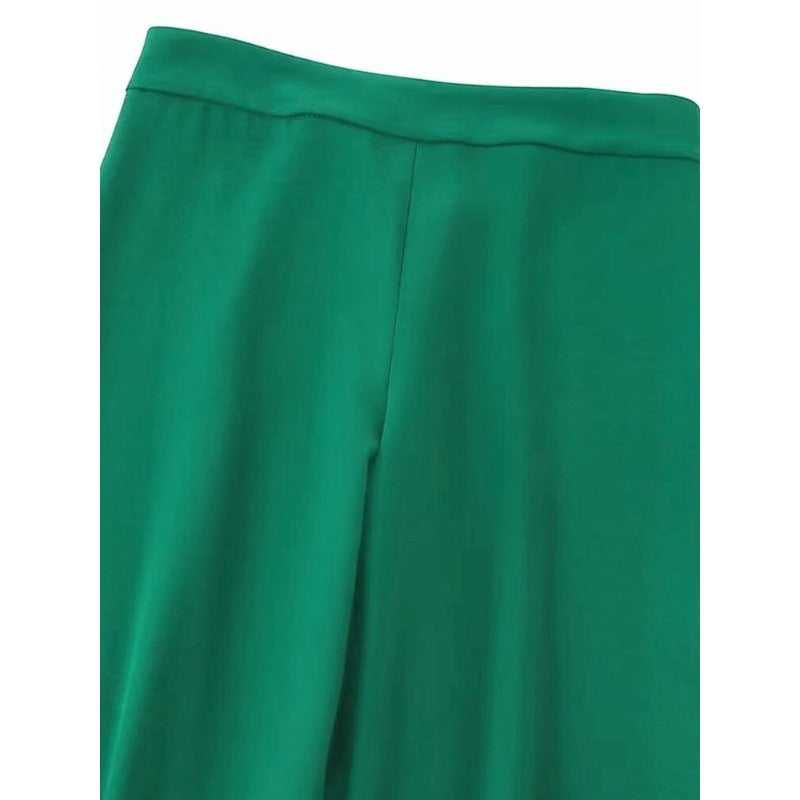 Casual Green Office Wear Flowing Straight Pants