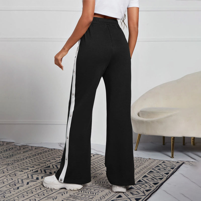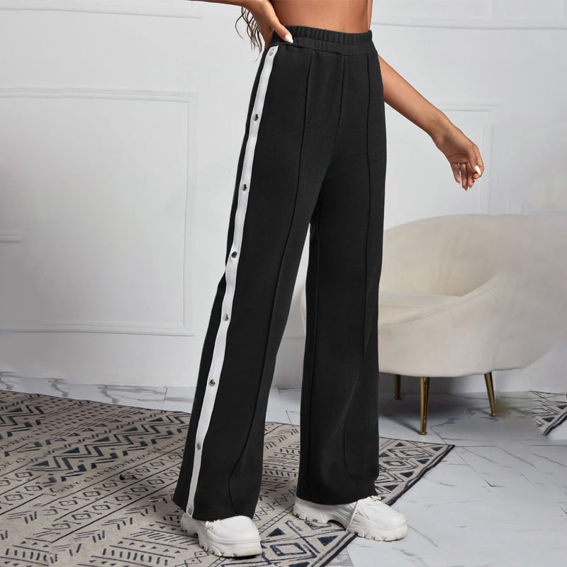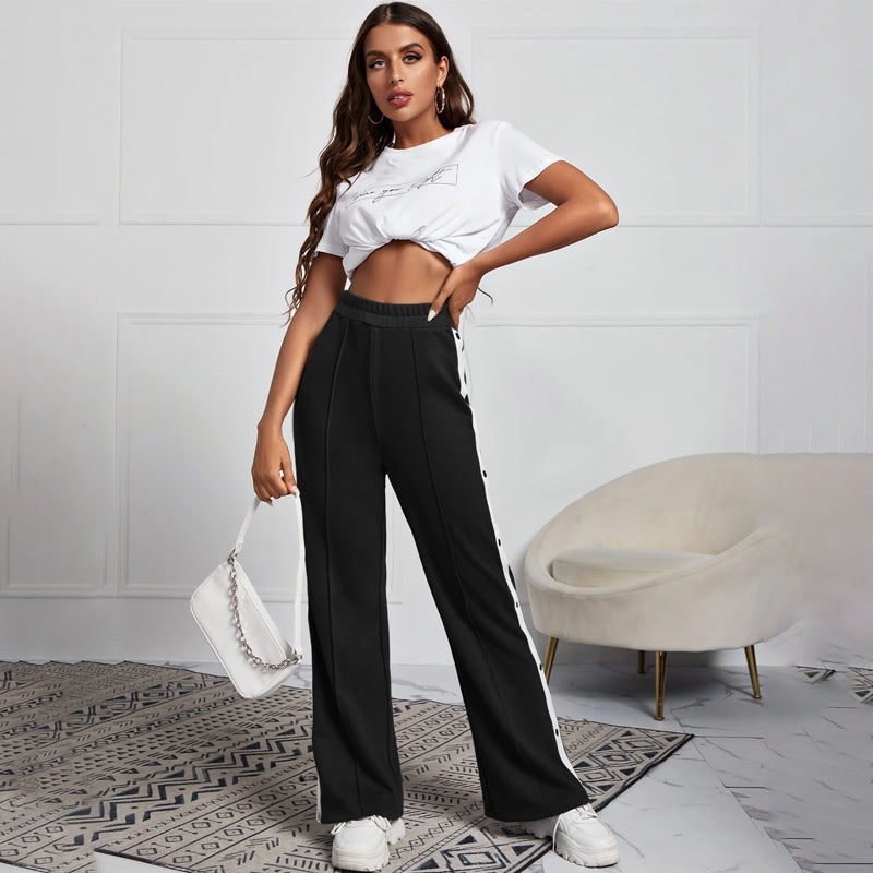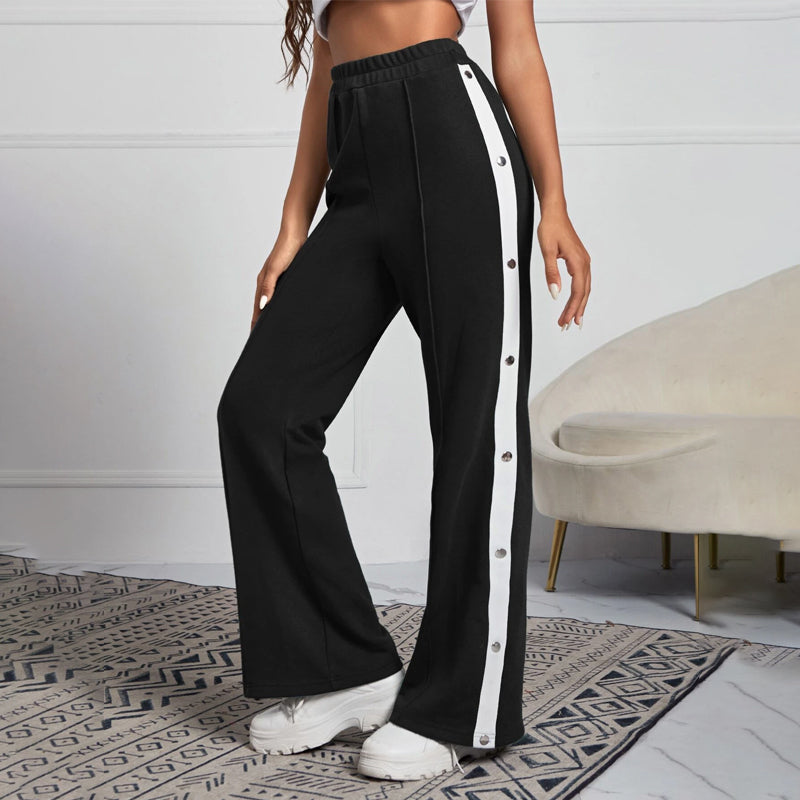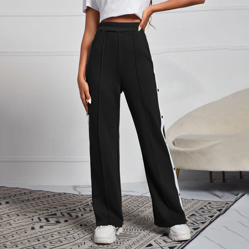 Exercise and be active as much as you want with these Contrast Side Seam Front Sweatpants. These pants feature a high waist, wide leg, and loose fit making them comfortable enough to be worn during exercise and when you want to lounge freely. The side stripe and striped pattern ensure that they are suitable even for casual outings.
