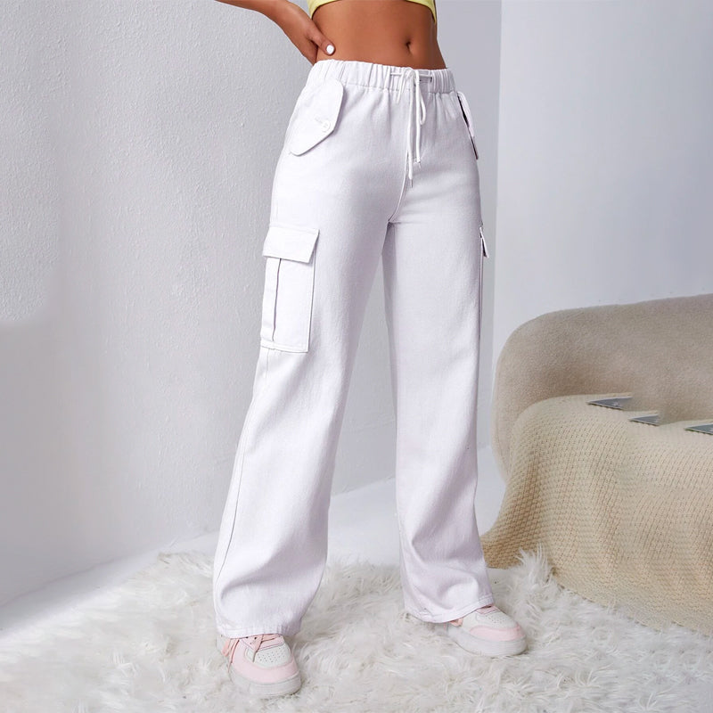 Drawstring Waist Flap Pocket Cargo Jeans