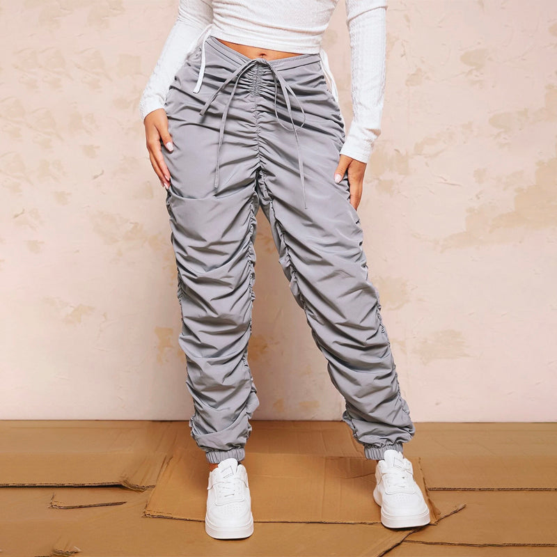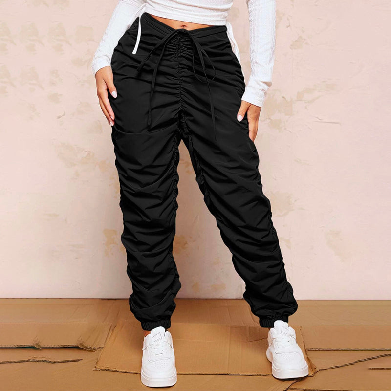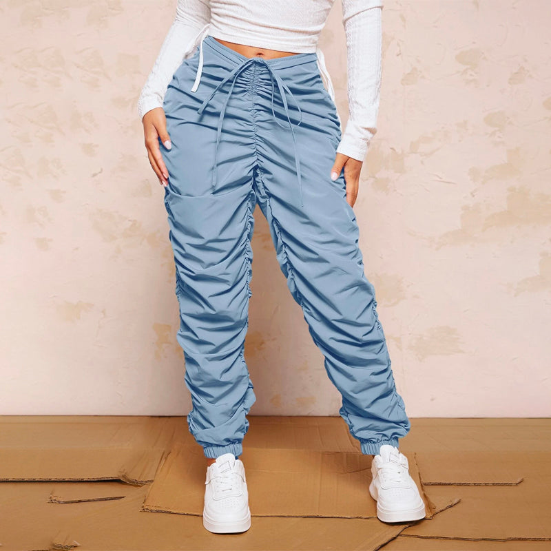 Drawstring Waist Stacked Pants