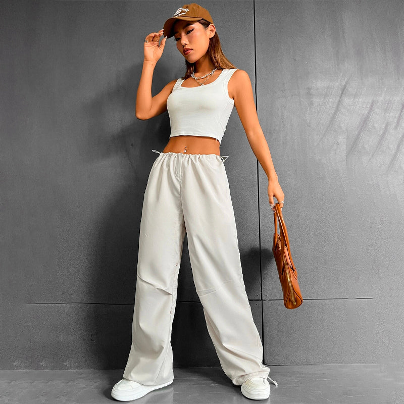 Easy Wear Drawstring Waist Parachute Pants