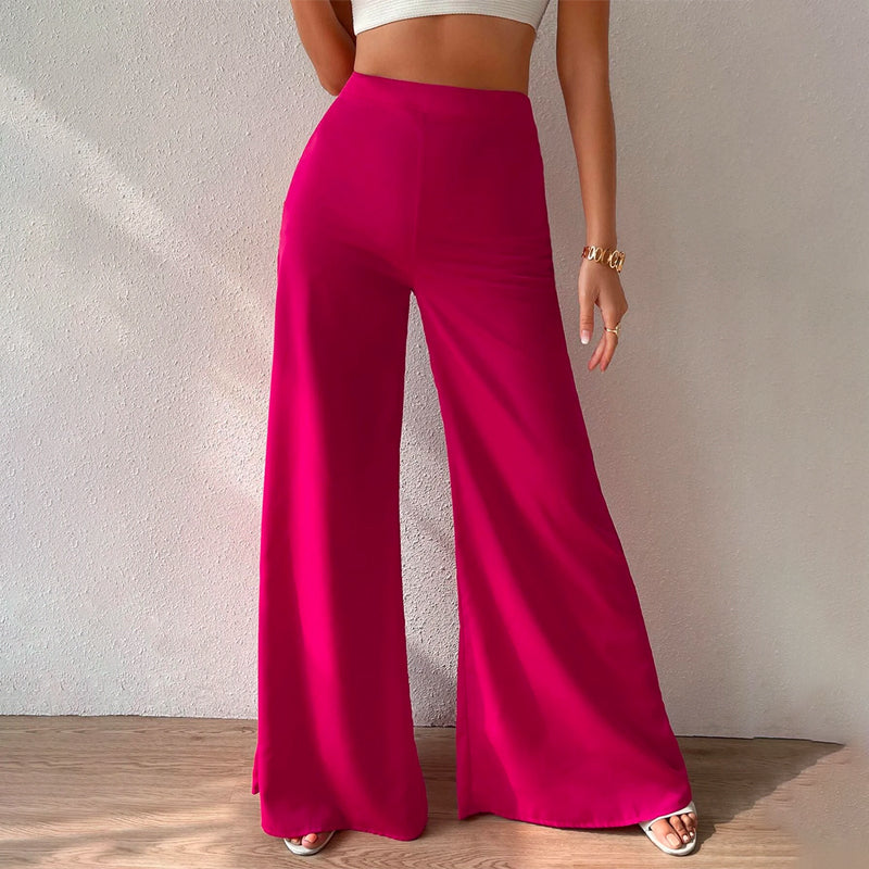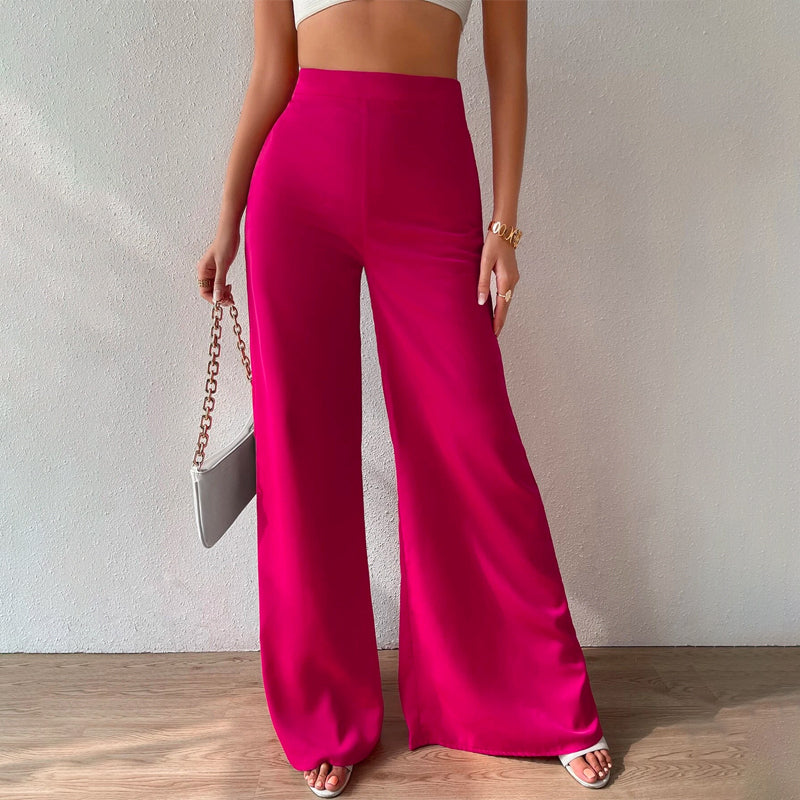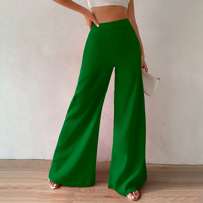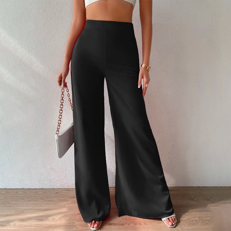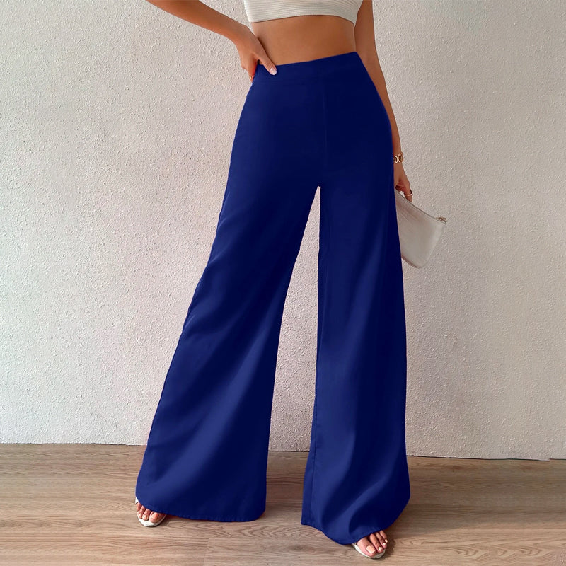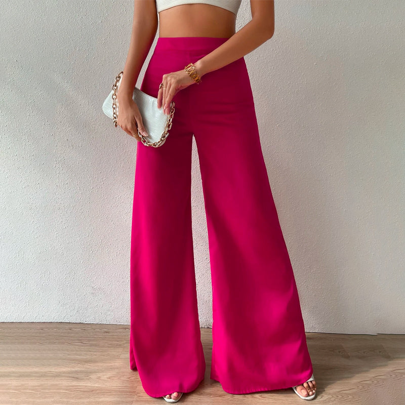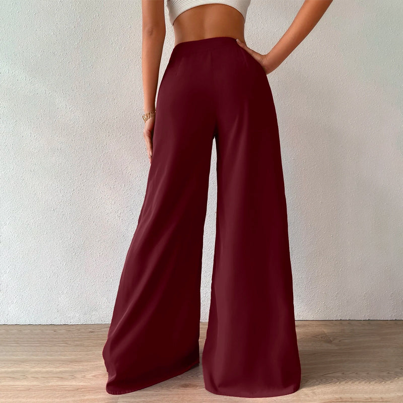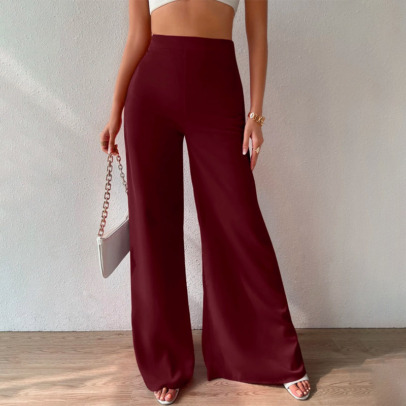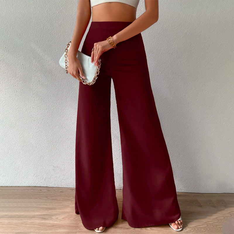 Elegant and stylish, these Easy Wear High Waist Wide Leg Pants are sure to turn heads wherever you go. Made of non-stretch fabric, this pair of pants have a slim silhouette that will flatter hourglass figures. The stretch waistline adds a comfortable fit and easy movement plus the zipper fly adds an oomph factor to these pants.