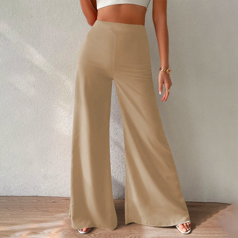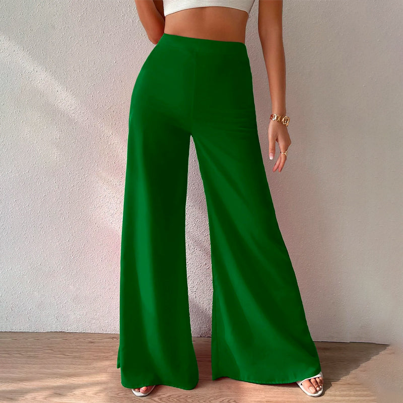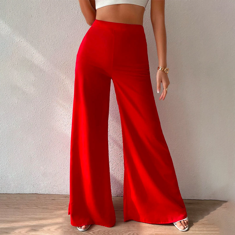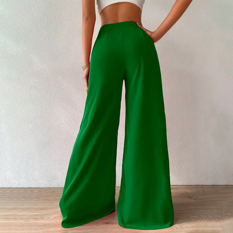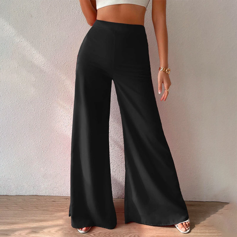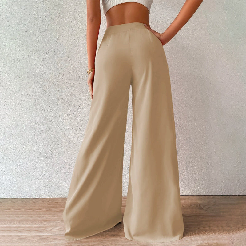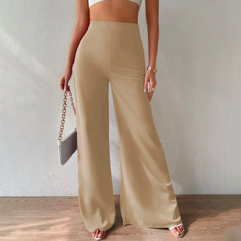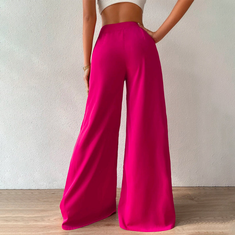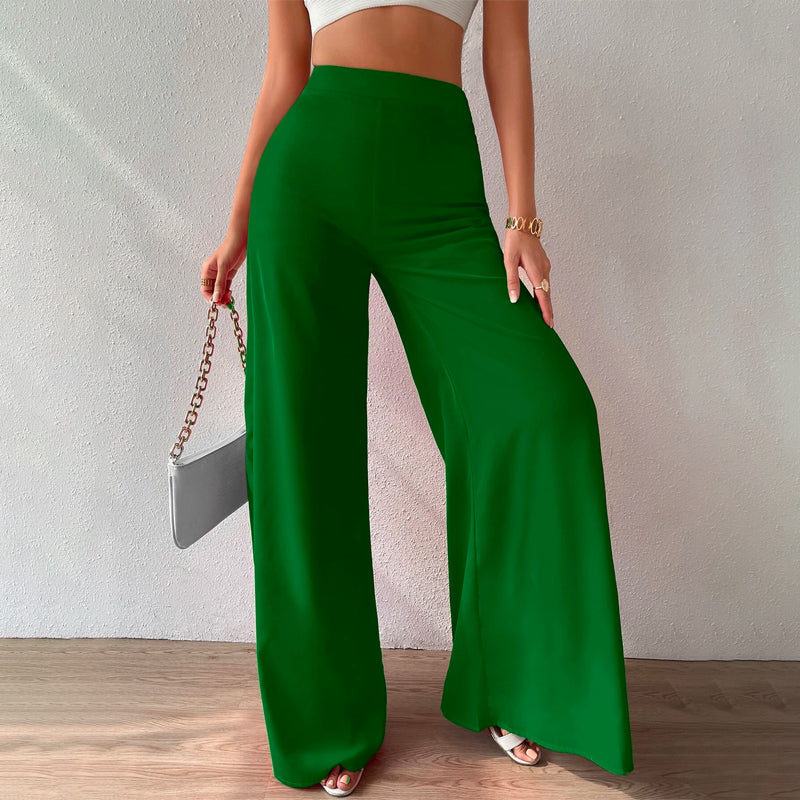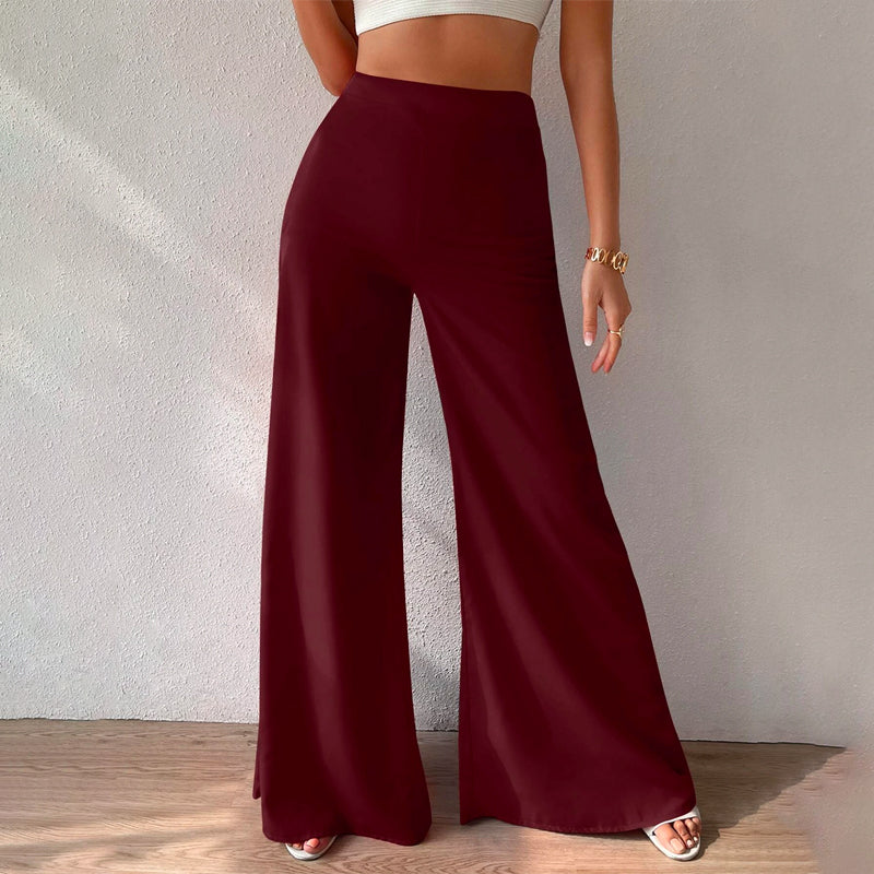 Elegant and stylish, these Easy Wear High Waist Wide Leg Pants are sure to turn heads wherever you go. Made of non-stretch fabric, this pair of pants have a slim silhouette that will flatter hourglass figures. The stretch waistline adds a comfortable fit and easy movement plus the zipper fly adds an oomph factor to these pants.