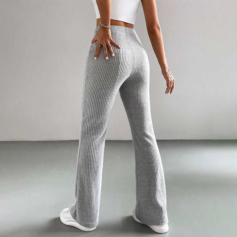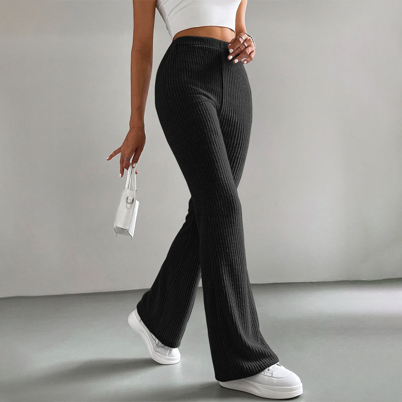 Bring comfort and style together with these Easy Wear Ribbed Knit Flare Leg Pants. These pants are made from fabric with a medium stretch, that allows easy movement and increased comfort, these pants provide you with a classic look. The zipper fly closure provides style and convenience while the button details add a touch of flair to your look.