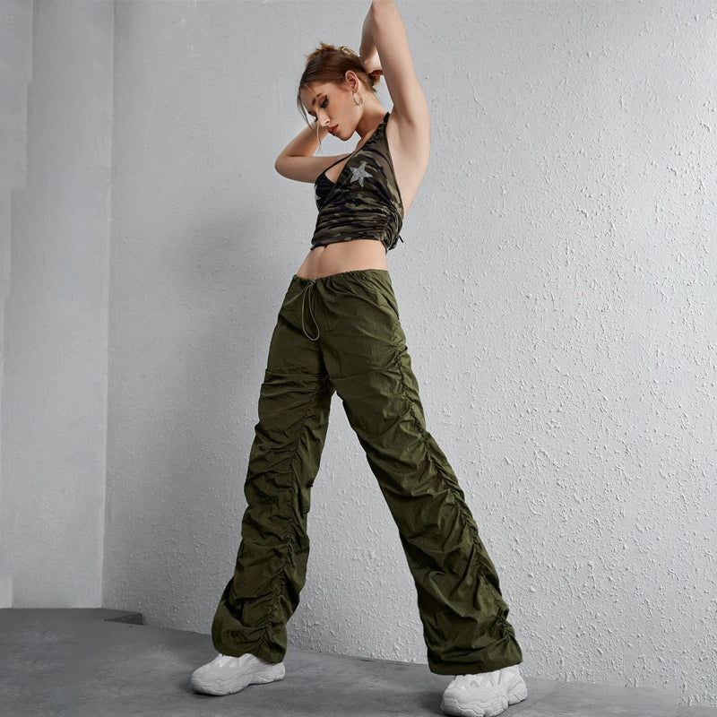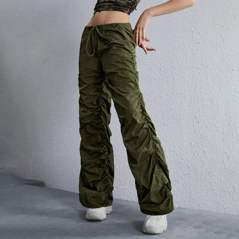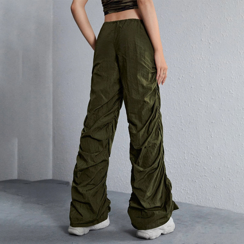 Easy Wear Solid Drawstring Waist Ruched Pants