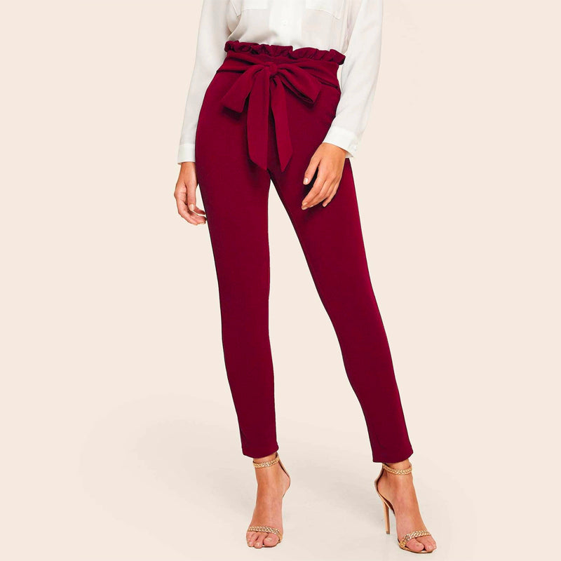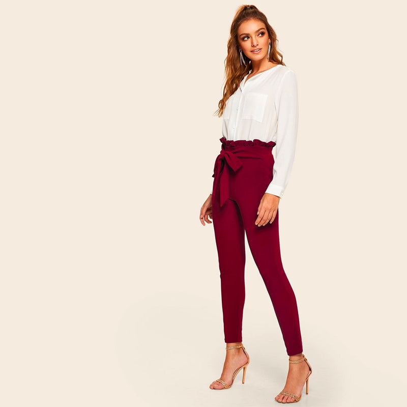 Easy Wear Waist Form Fitted Pants are a great solution if you're looking for more coverage and protection on your legs. They're made of light, breathable fabric that doesn't get uncomfortable when you've been standing up all day. The belted paper bag waist makes these pants properly fit on your waist and the cropped length adds to the look of your outfit.