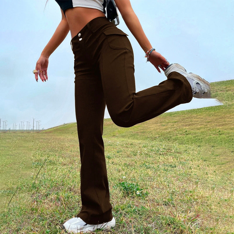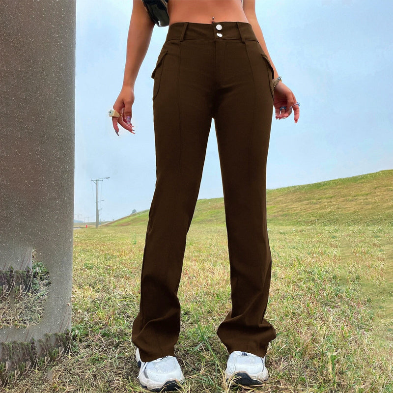 Easy-wear Flap Pocket Side Boot-Cut Leg Pants are perfect for off-duty days in the city or weekend getaways. This stylish and comfortable pair of women's flare-leg pants are the perfect item to match your casual outfits. The pockets, zipper closure, and button front all add to the functionality of these pants.