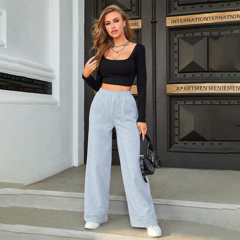 Elastic Waist Slant Pocket Sweatpants are made with a comfortable fabric, making them both breathable and cozy. The high waistband is paired with a soft elastic waistband. With side zipper pockets, these pants are perfect for everyday wear! The loose fit makes them particularly suitable for chilling at your home.