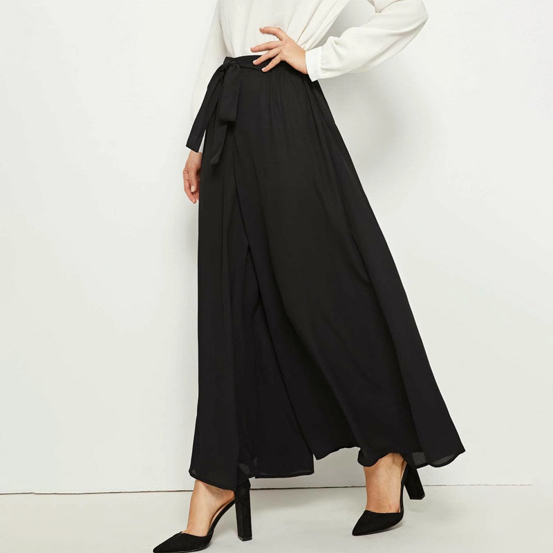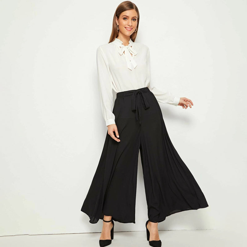Elastic Waist Tie Front Super Palazzo Pants